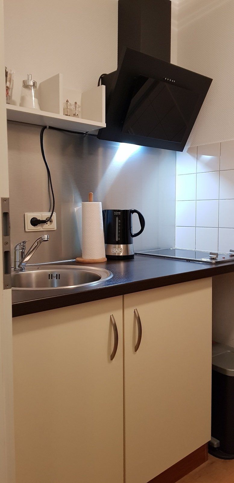 Moderne kjøkken åpent mot stuen og fullt utstyrt, med balkong for 1 til 3 personer
