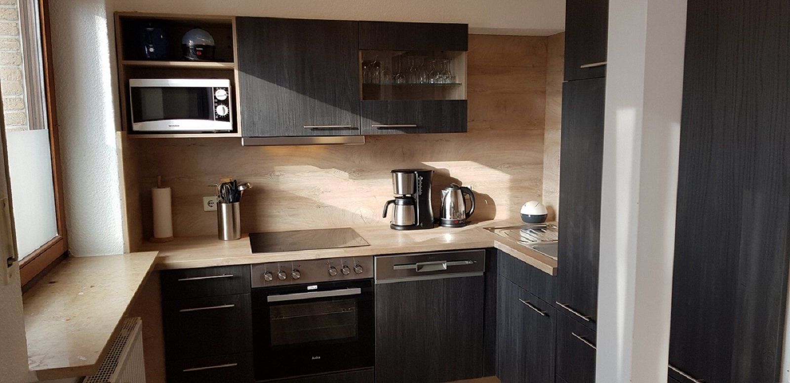 Moderne open keuken naar de woonkamer en van alle gemakken voorzien, met een balkon voor 1 tot 3 personen